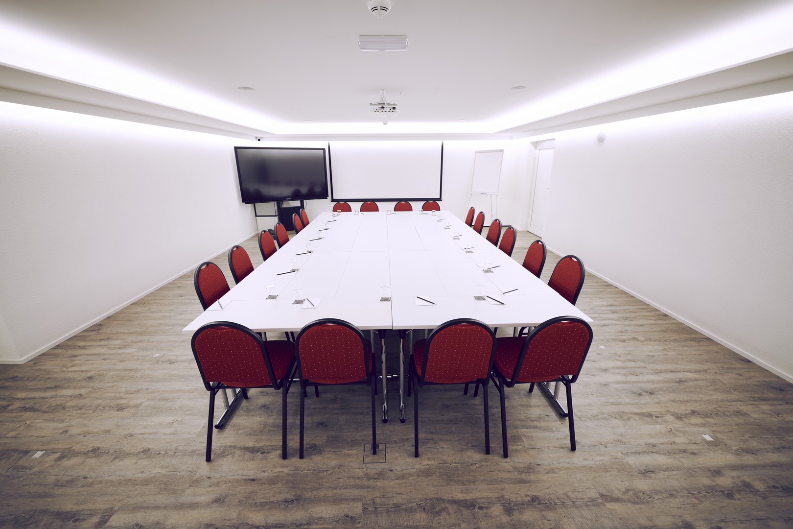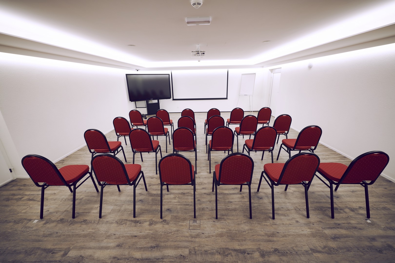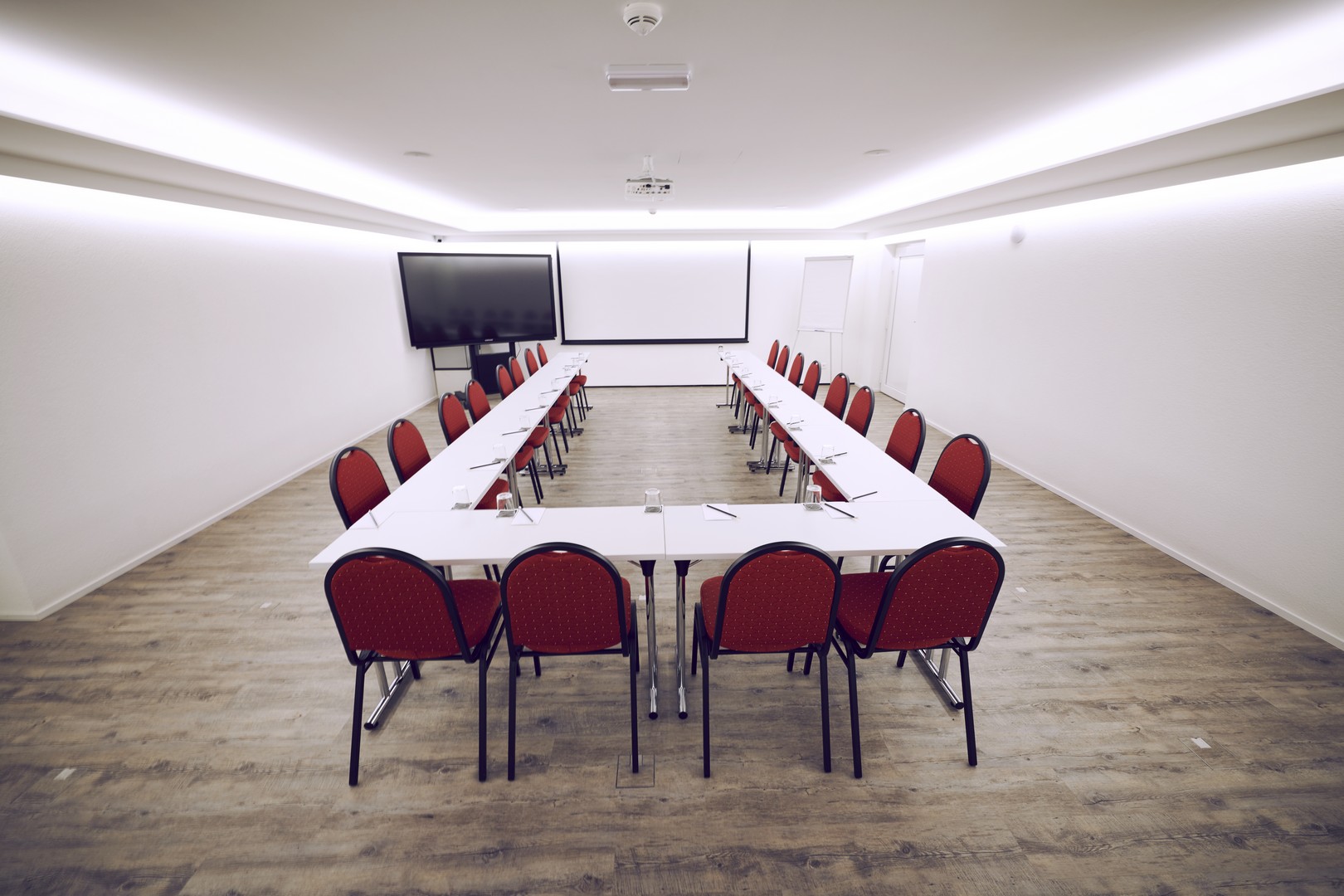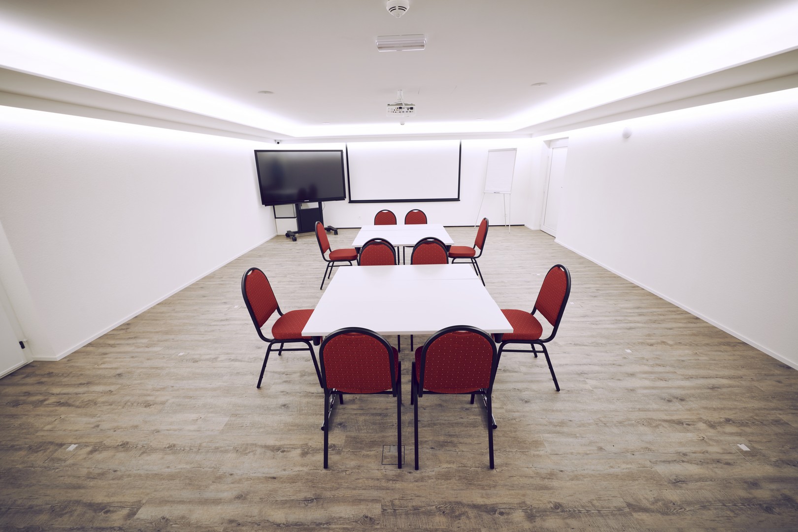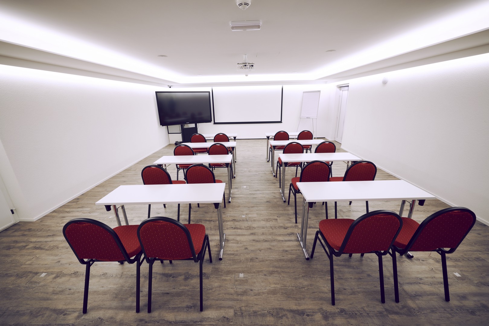 Per garantire il massimo della funzionalità e della professionalità, la sala è dotata di attrezzature moderne e versatili, tra cui una TV Samsung Touch, un beamer, un flipboard, una blackboard e un computer, pronti a supportare ogni tipo di evento.